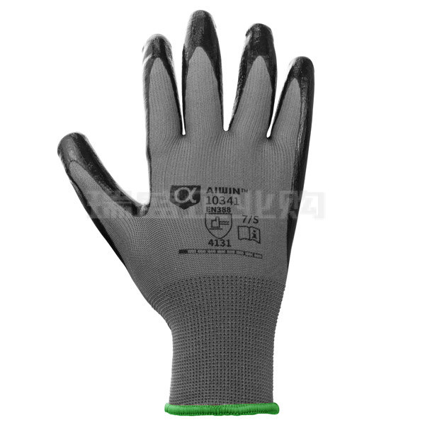 AIWIN 舒适耐磨丁腈涂层手套 10341 7码 涤纶丁腈 掌浸 灰浸黑 12副 1包