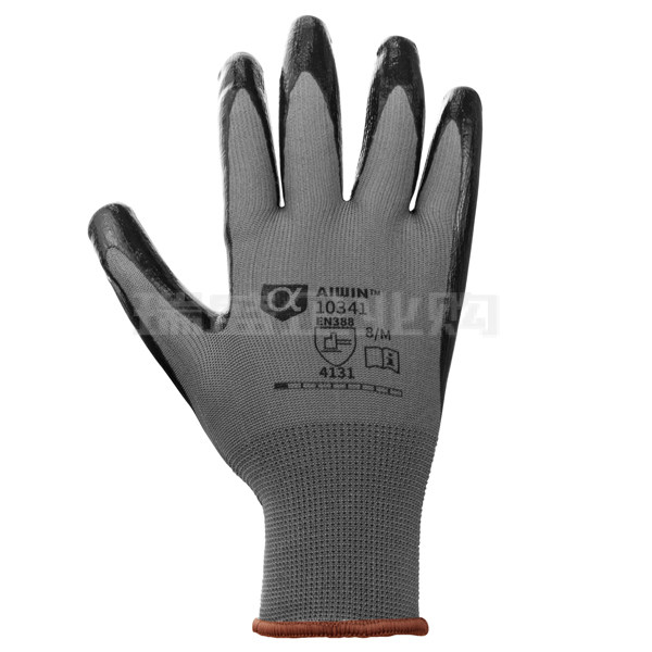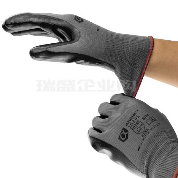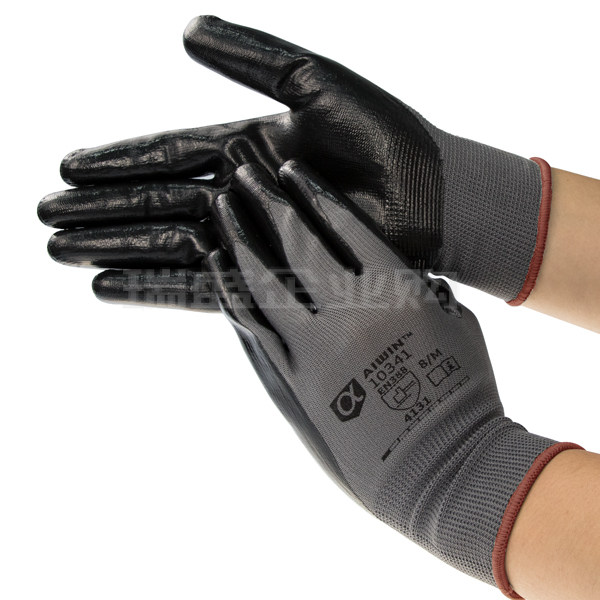 AIWIN 舒适耐磨丁腈涂层手套 10341 8码 涤纶丁腈 掌浸 灰浸黑 12副 1包