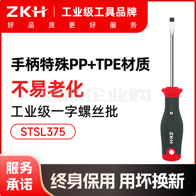 ZKH/震坤行 工业级一字螺丝批 STSL375 带磁 3×75mm(∅3mm) 1把