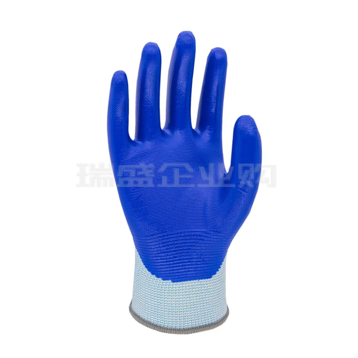 13针涤纶掌浸蓝色丁腈光面手套